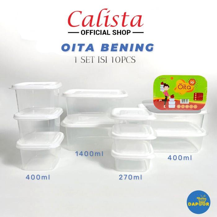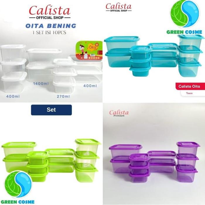 Oita Calista Food Kontainer Isi 10Pcs / Toples Kotak Calista Set Wadah Buah Sayur Putih - Biru Tosca