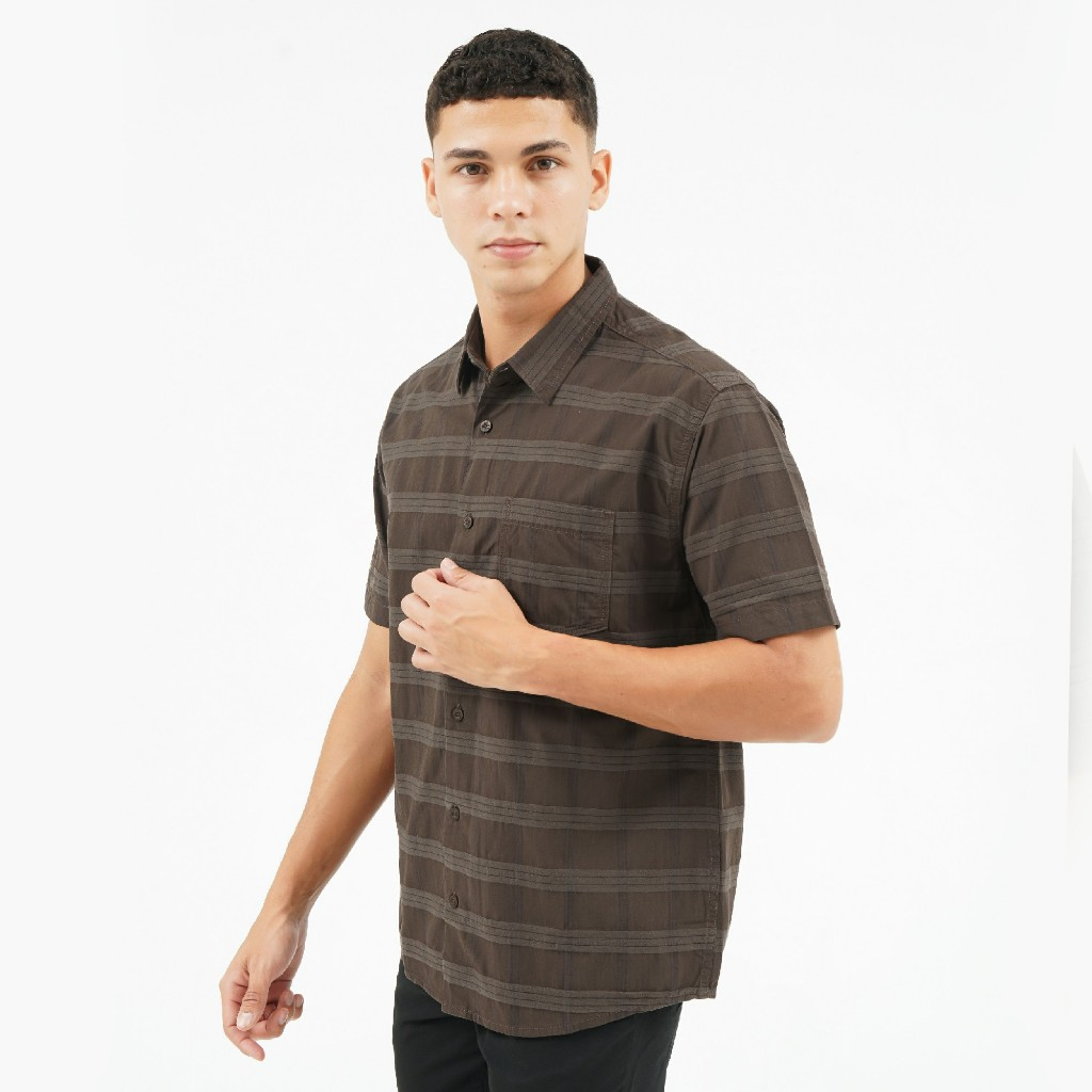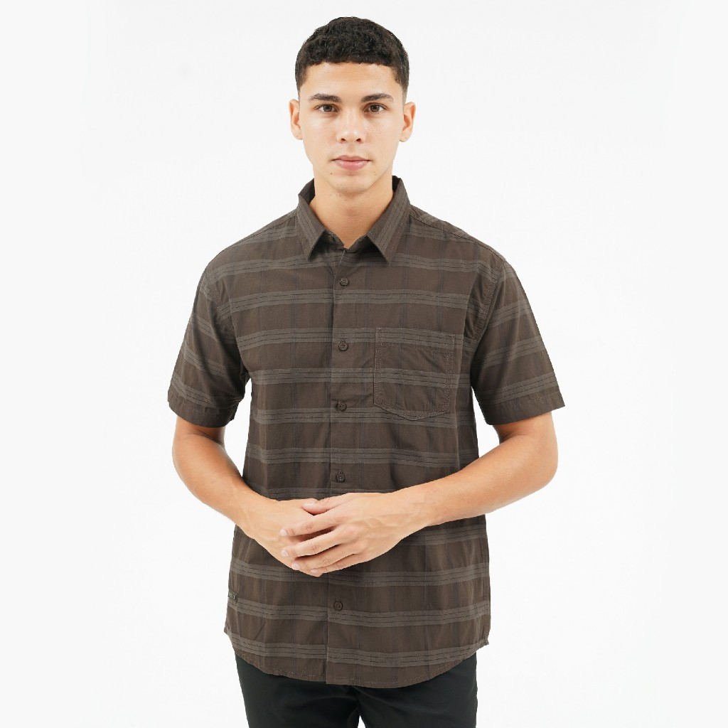 KEMEJA PRIA CRESSIDA KEMEJA CASUAL SLIMFIT MEN BROWN LENGAN PENDEK - HMKBS.UB499X ORIGINAL MALL