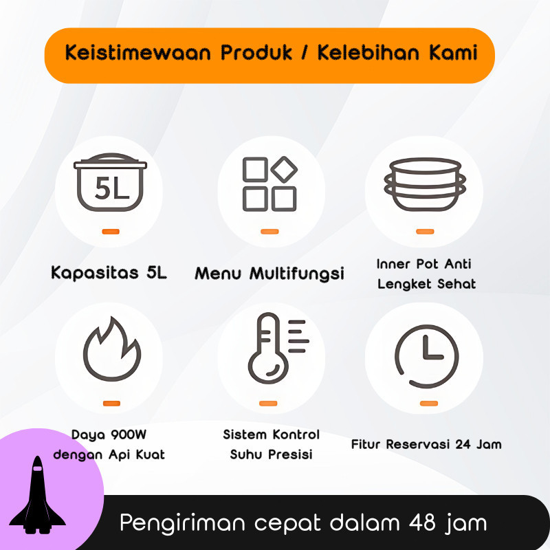 5L Magic Com Rice Cooker Multifungsi Low Carbo Penanak Nasi Magic Com Anti Gemuk