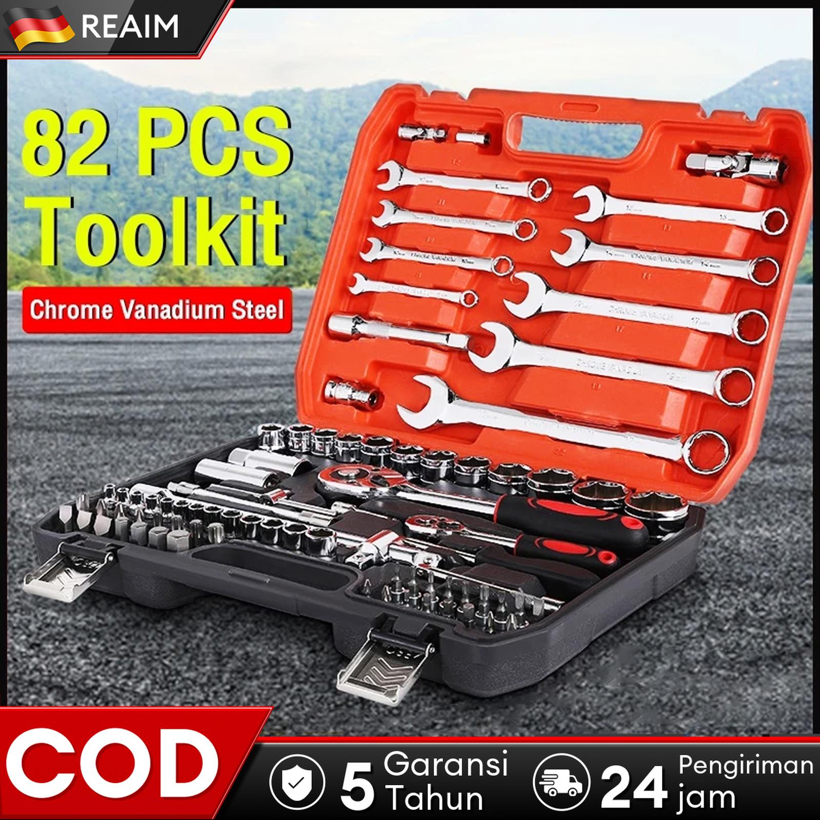 82pcs Tool Kit Kunci Shock Set/Alat Perbaikan Mobil Profesional/Kunci Socket Set Lengkap /as torsi Set /alat kunci pas k