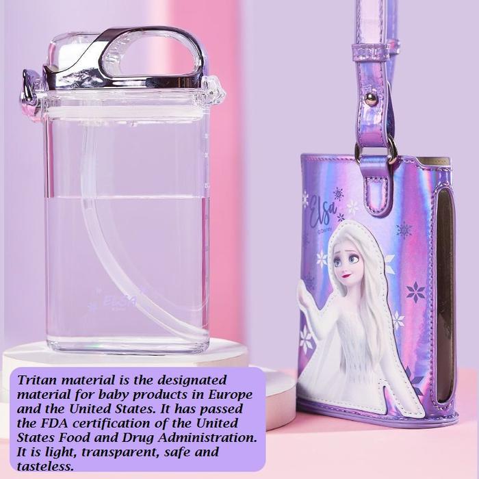 BOTOL MINUM TRITAN ANAK (BPA FREE) BOTOL PINKAH SQUARE LEATHER CASE MICKEY MINNIE ELSA 380ML
