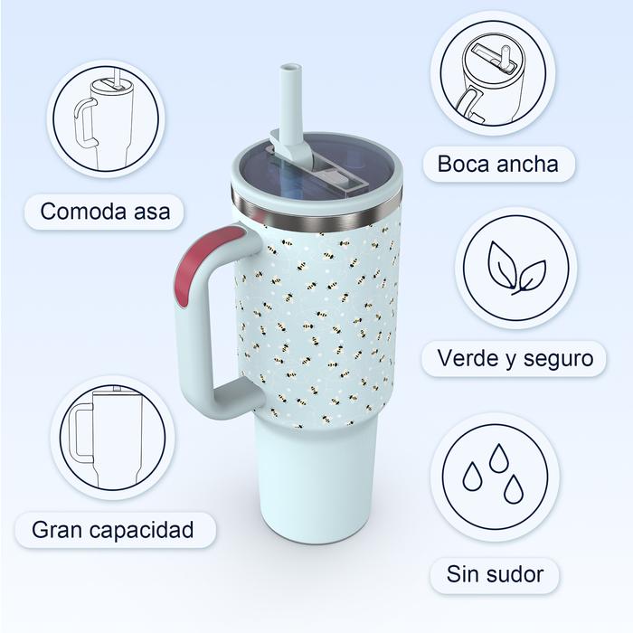 Tempflask Tumbler 40 oz Stainless Steel 1200ml Tahan Bocor dengan Tutup Sedotan & Genggaman Mudah