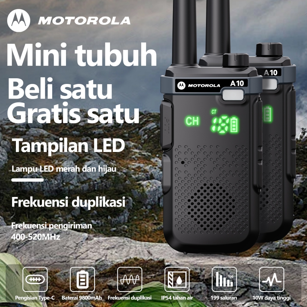 HT Motorola A10 Walkie Talkie 199 Channels Handheld Transceiver 10W High Power 9800mAh Two Way Radio IP54 Tahan air Suit