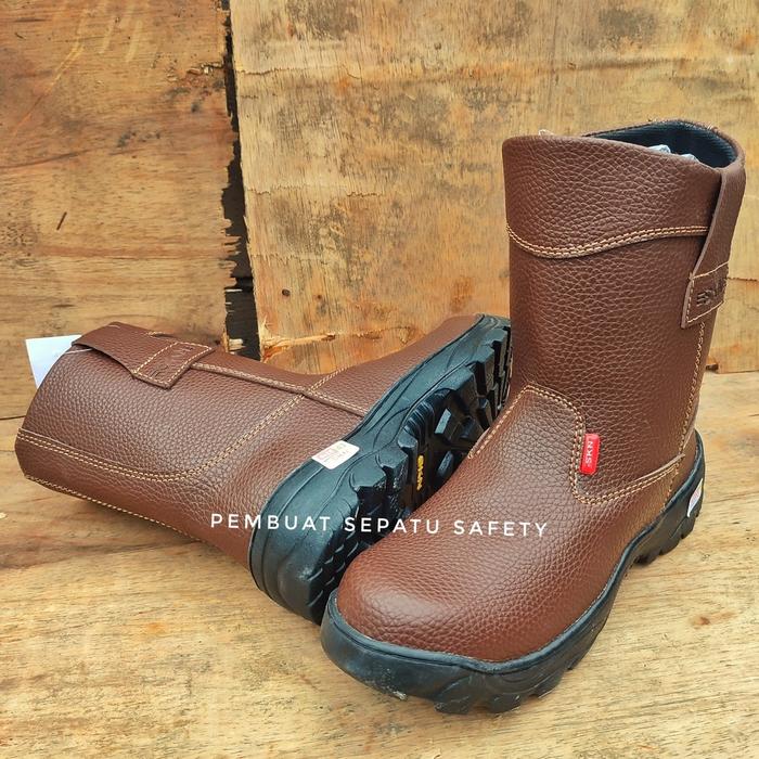 Sepatu Safety Boot Terlaris Ujung Besi Berkualitas Kulit Keselamatan Kerja Pabrik Proyek Bengkel Pom Sepatu Safety King