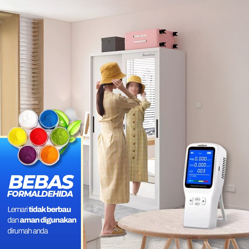 STEEL ELITE LEMARI BESI SLIDING 2 PINTU LEMARI BESI PAKAIAN LEMARI BAJU MINIMALIS FULL MOTIF