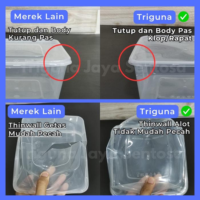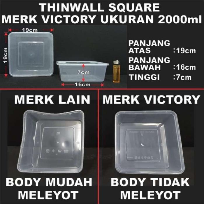 Thinwall Sq Tebal 1000Ml 1500Ml 2000Ml 3000Ml Per Pack Kotak Makanan Square Plastik Sby - 1000Ml