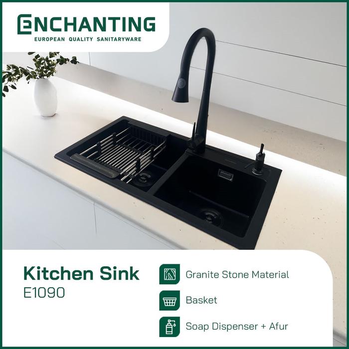 Enchanting Kitchen Sink Granite Stone 2 Bowl Black 78X43 | Bak Wastafel Cuci Piring Dapur Tebal Paket Komplit Hitam Topm