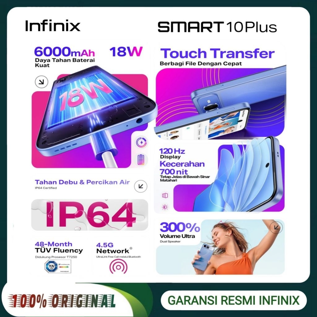INFINIX SMART 10 PLUS NFC RAM 8/128GB (RAM PLUS 8GB+8GB) RESMI INFINIX INDONESIA