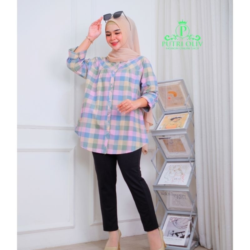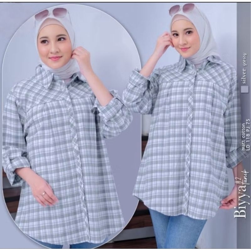 Kemeja Wanita Katun Kotak-Kotak Lengan Panjang