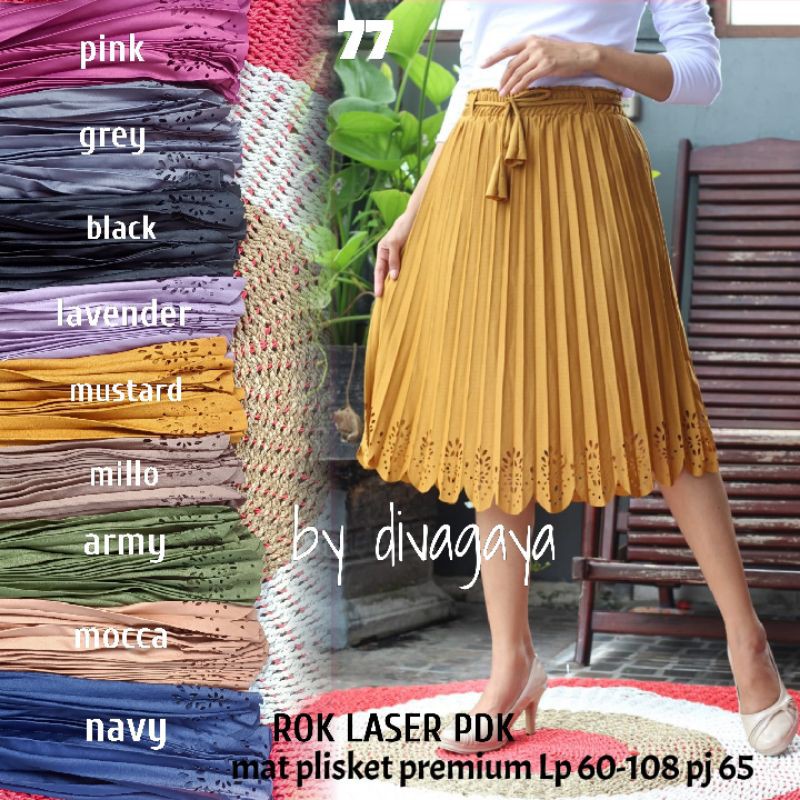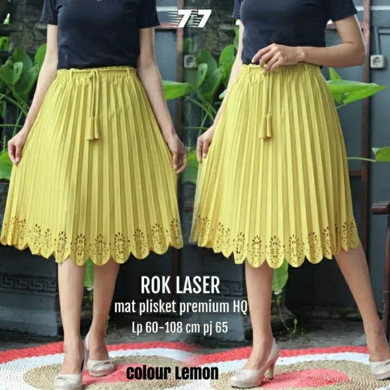 Rok Laser Pendek 7/8 Plisket Premium Best Seller,Ready Bahan Warna