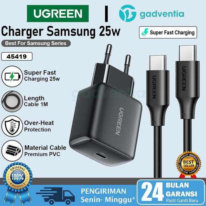 UGREEN Adaptor Kepala Charger Samsung Note 20 A52 A55 S22 S23 S24 Ultra Super Fast Charging 25w 45w