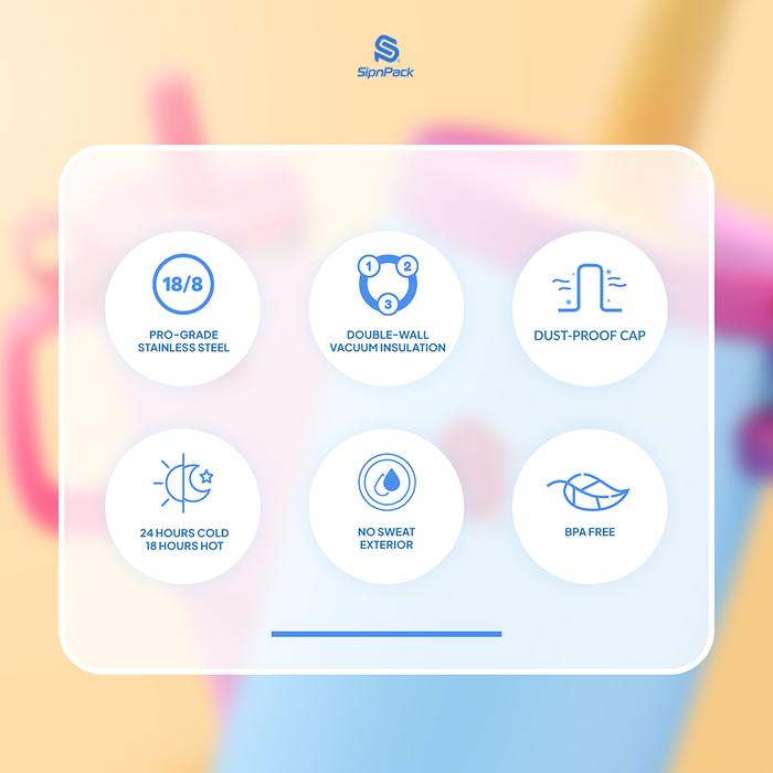 SipnPack JumboSip Bottle 40 oz Sky Sorbet 1200ml Insulated Bottle Leak Proof Cap Lid Botol Minum 1