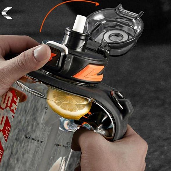 Botol Minum Jumbo 2 Liter & 1 Liter Bpa Free Tritan Ada Sedotan Dan Tali Botol Air Datar Anti Pecah