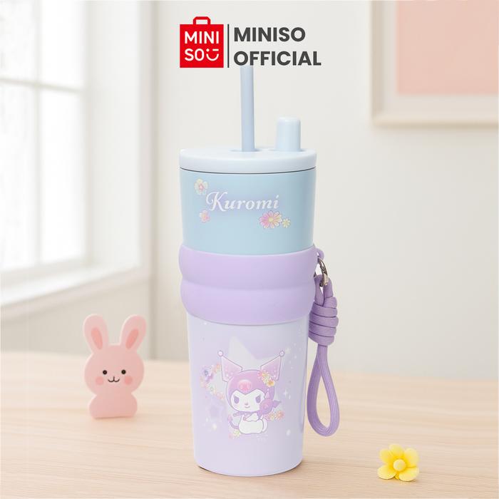 Miniso Kuromi Hello Kitty Flower Language Series Double Wall Steel Bottle with Sleeve & Strap 750mL
