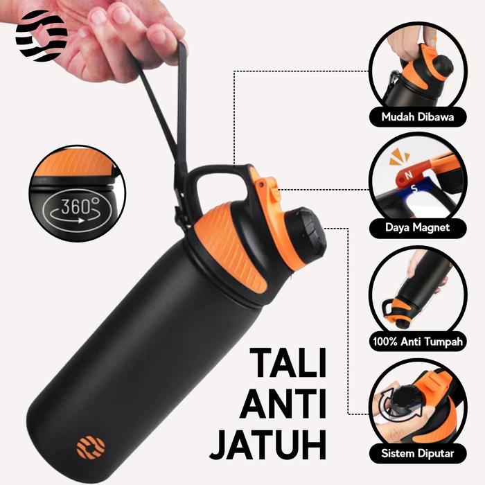 FJbottle - Botol Portable Olahraga Stainless Steel 600ML Dengan Tutup Botol Magnet Free Sikat Botol