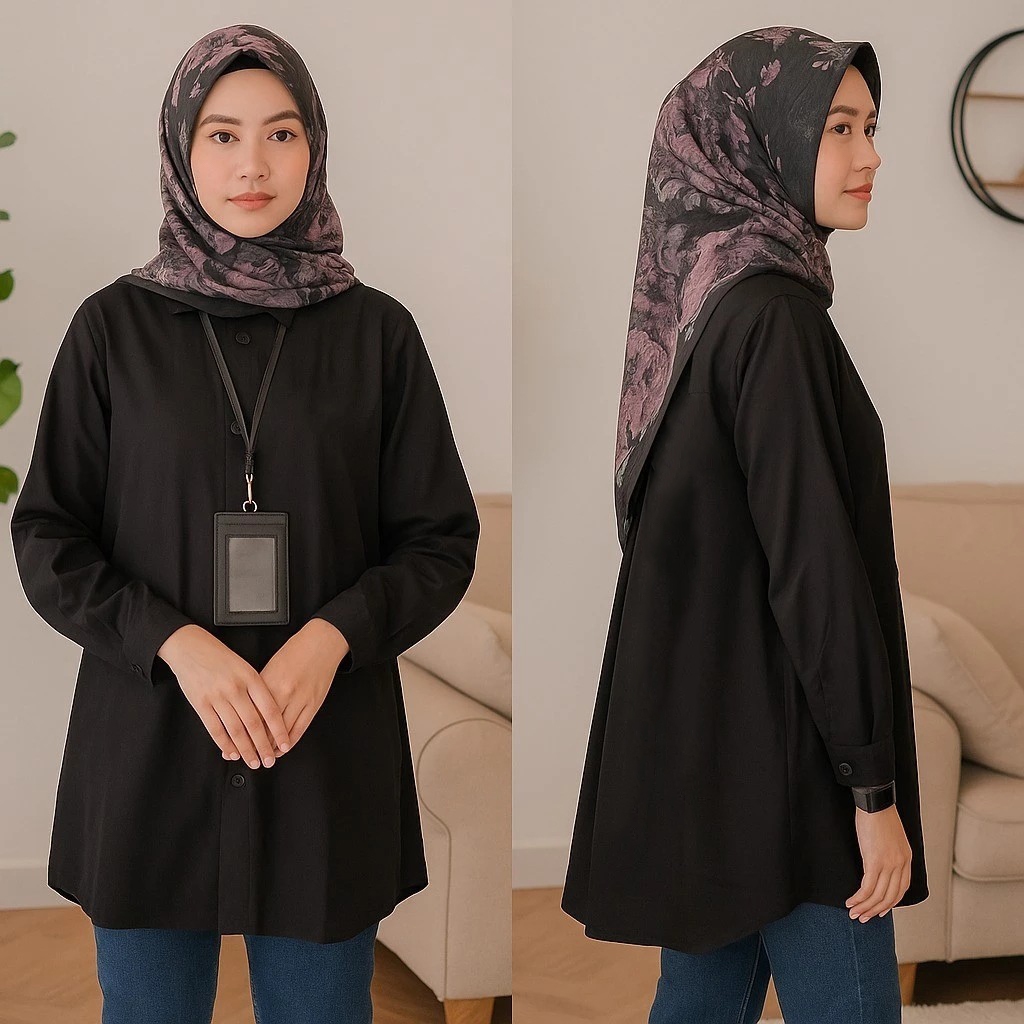 Femes Sofwa Top Blouse Atasan Wanita Muslim Oversize Besar Matt Rayon Viscose Raisa Kemeja Premium