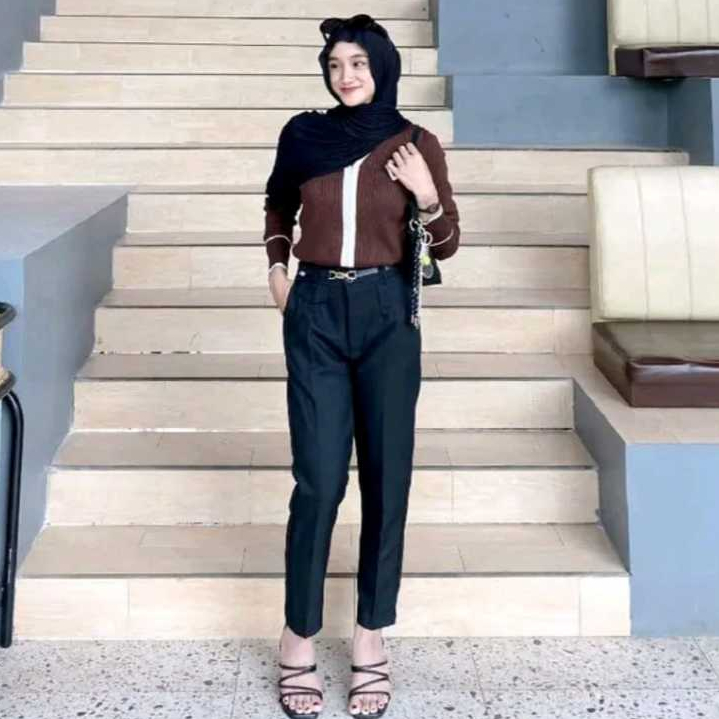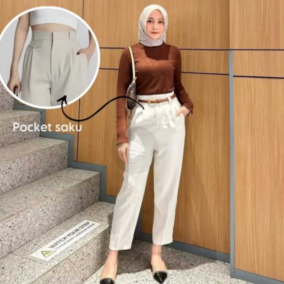 Ara Basic Pants Highwaist - Celana Kantor wanita - Loose Pants Casual Wanita Karet Kerja Formal