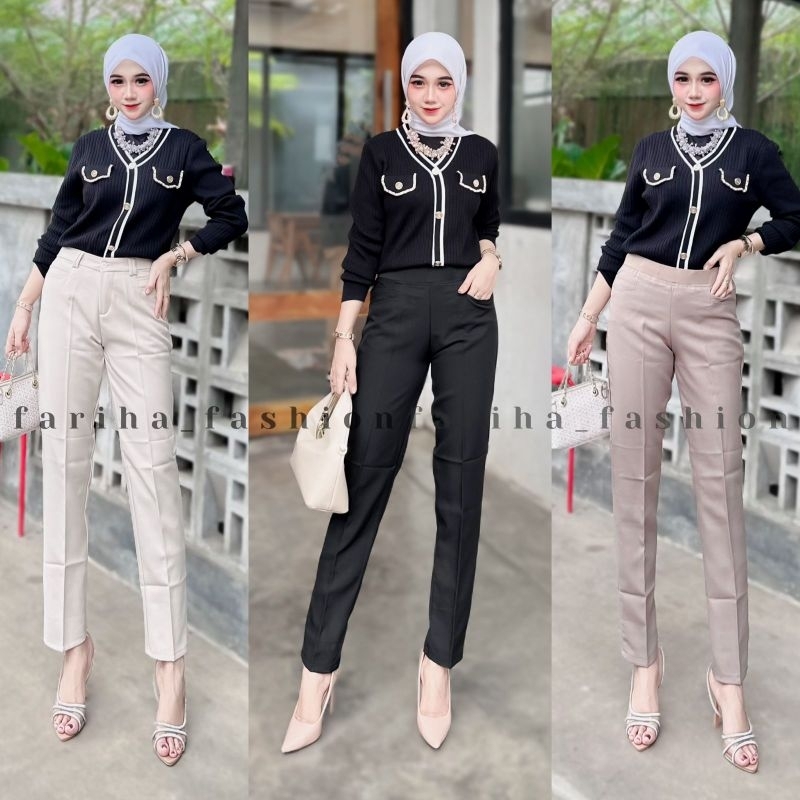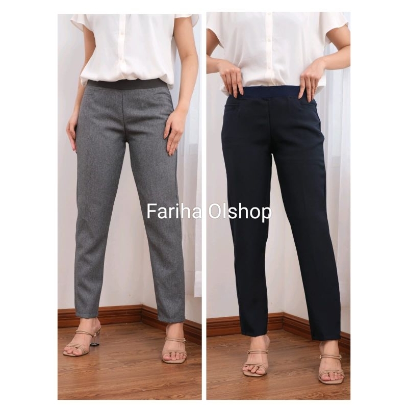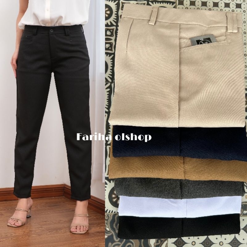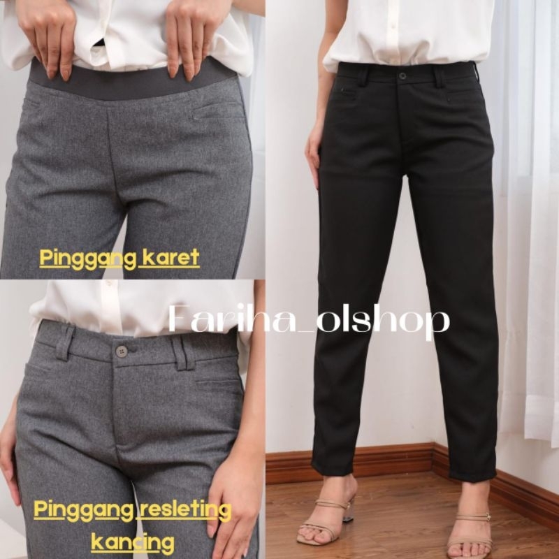 Celana Kantor Wanita Wol Semi Stretch Kekinian
