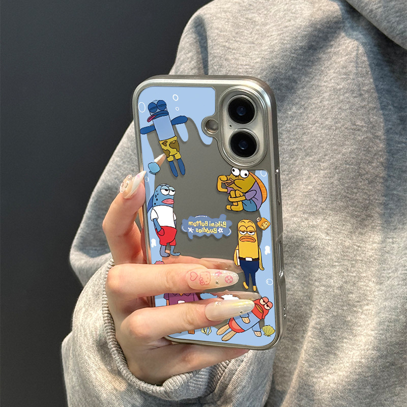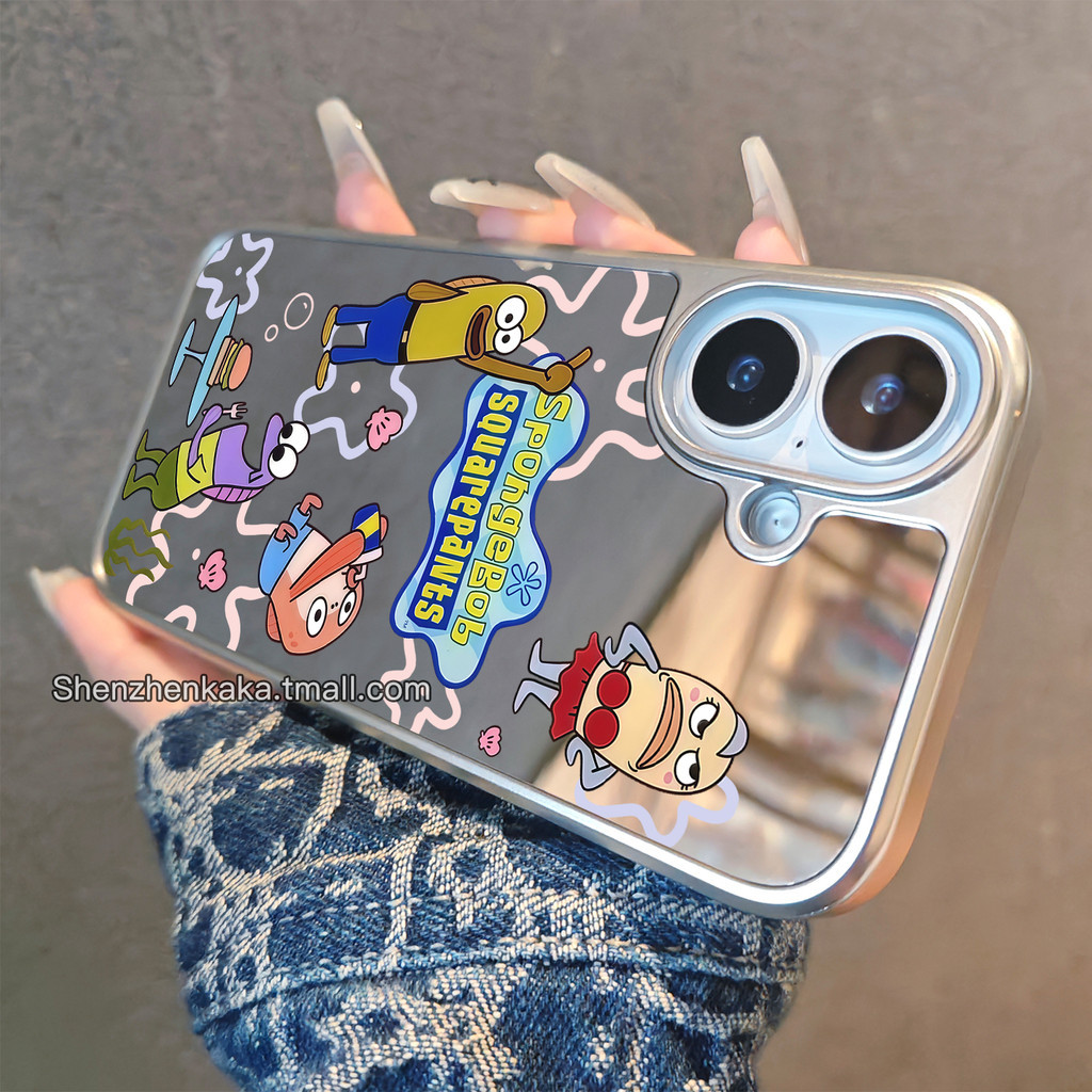 Case Anime Cartoon Bling Bling Cermin Hologram hp iPhone 16 13 15 11 12 11 14 Pro Max Silver Cewek Coquette