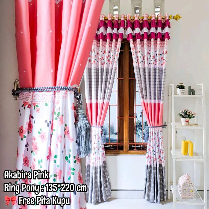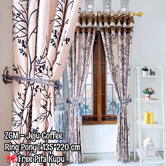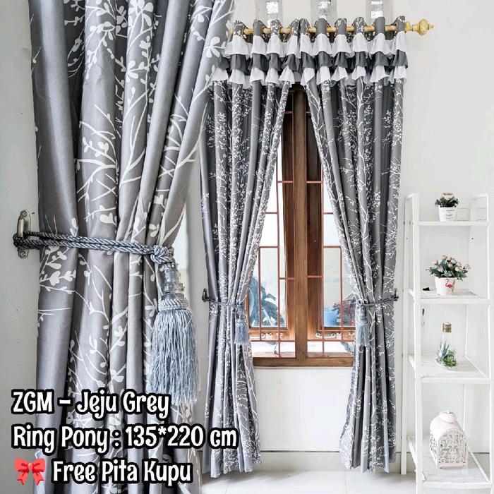 Gorden Rumbai Pony Ring 12 Pintu Dan Jendela L135 P220 New Motif Jeju Bunga Best Seller Bahan Katun Free Tali Pita - B