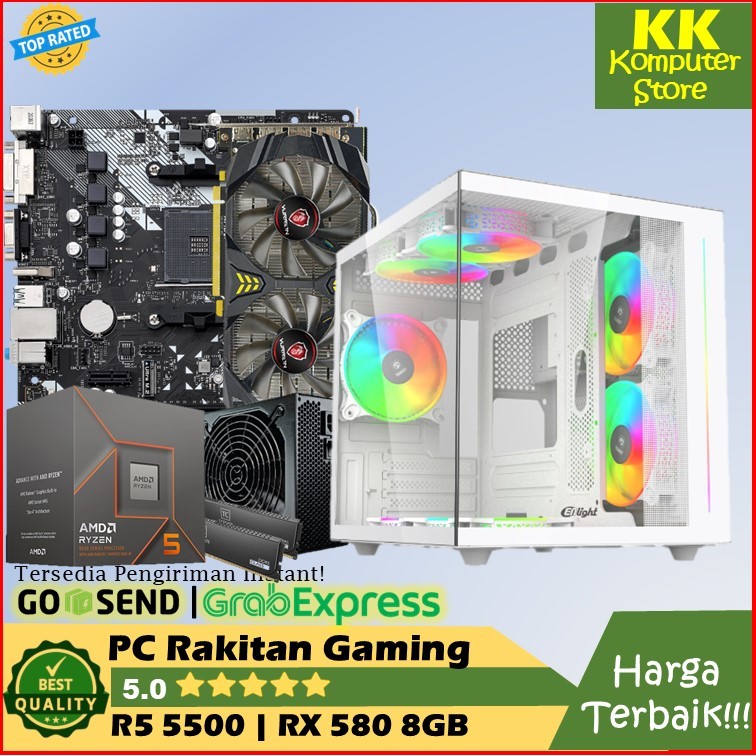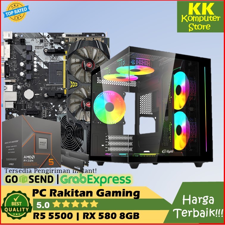 Pc Rakitan Gaming Ryzen 5 5500 | RX 580 8GB| Ssd Nvme 256Gb|Hdd 500GB [ Pc Only / Fulset Monitor ]