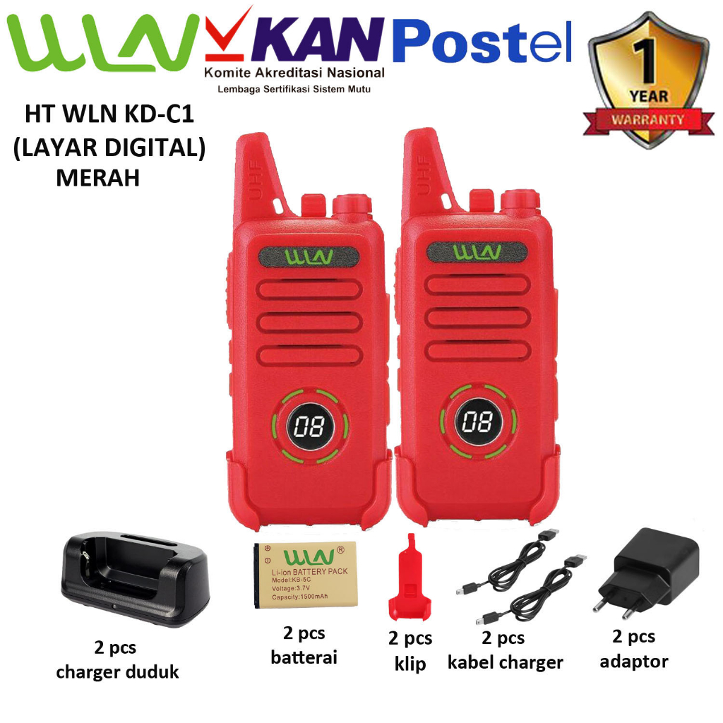 Walkie Talkie WLN HT Two-Way Radio KD-C1(Dengan Layar Digital)-Hitam-Baterai 1500 mAh