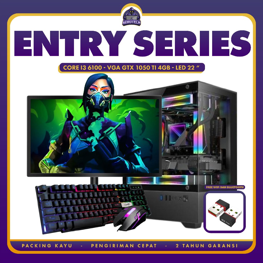 AEROTECH ENTRY PC RAKITAN I3 6100 | RAM DDR4 16 GB | VGA 8 GB | LED 24 INCH 100HZ LIBAS GAME ESPORT