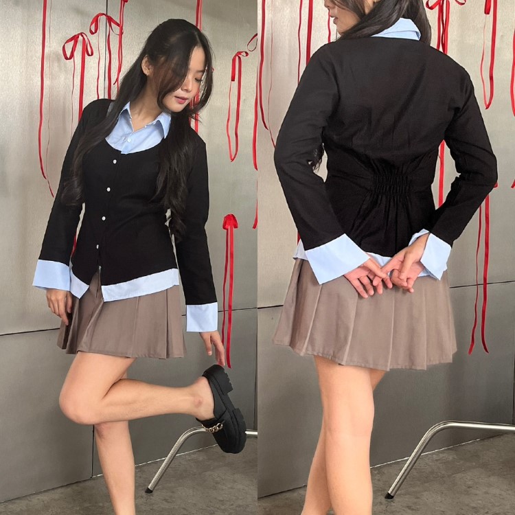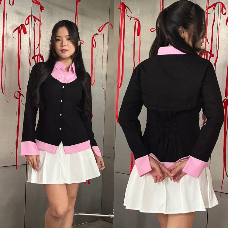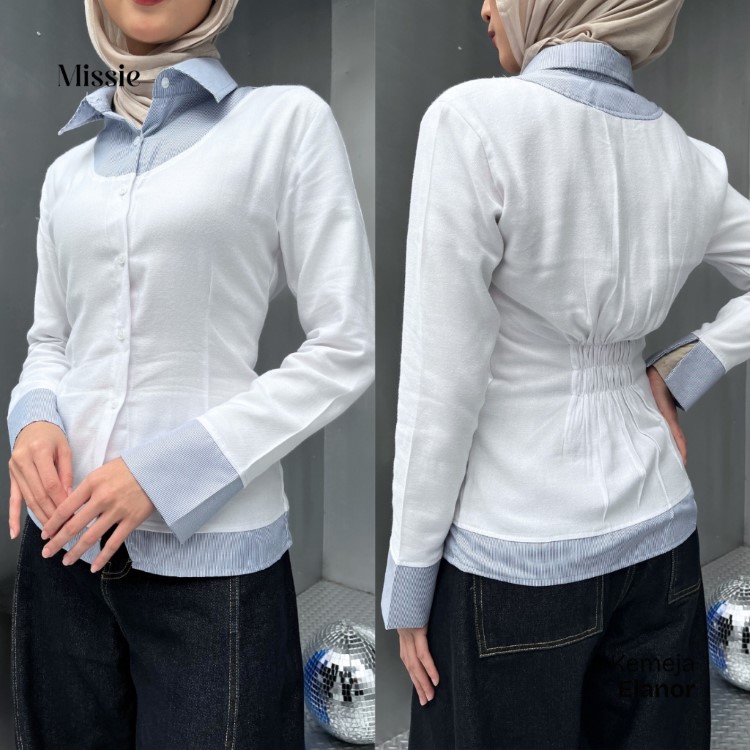Kemeja wanita Terbaru Kekinian Blouse Slim Fit Long Sleeve Korean Style Modern Kombinasi 2 Warna