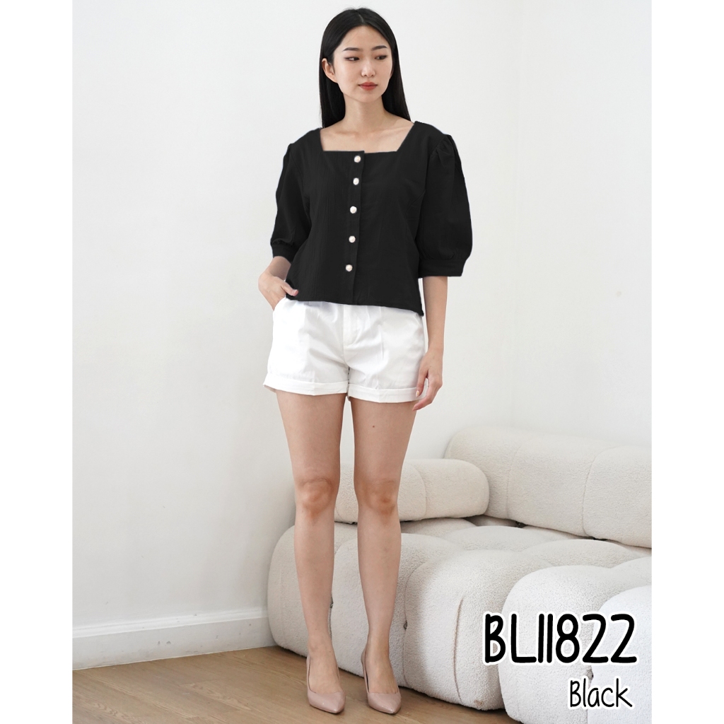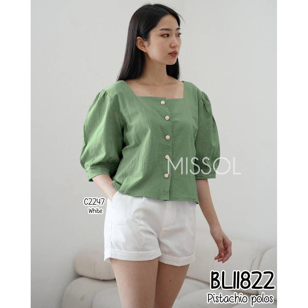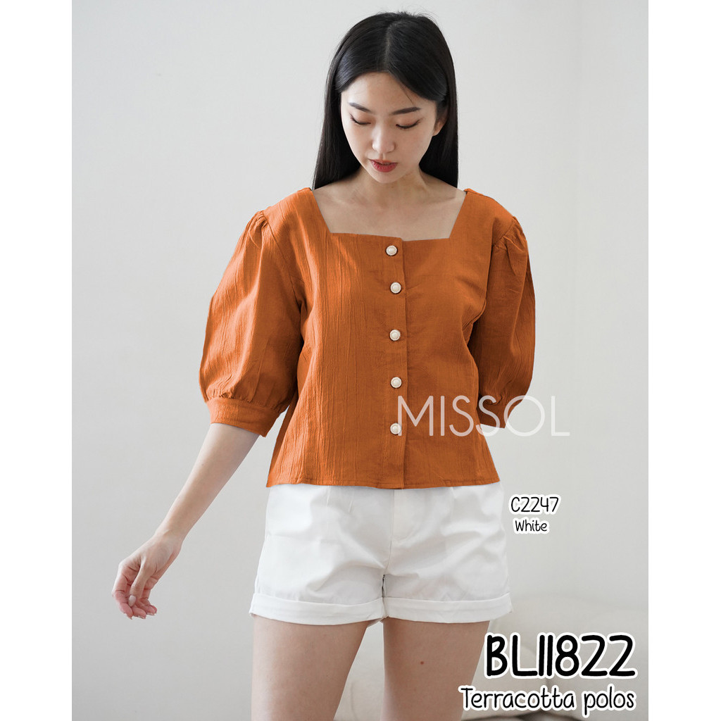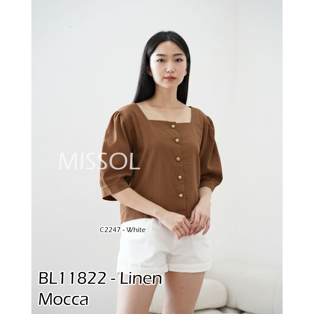 MISSOL Atasan linen wanita polos lengan balon korean style BL11822 11822