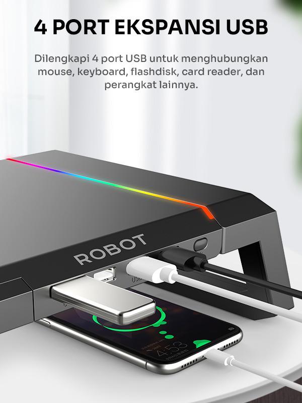 ROBOT RT-LMH01 MEJA LAPTOP MONITOR STAND WITH 42 USB HUB & LIGHTING DRAWER STAND MULTIFUNGSI COMPUTER - RT-LMH01