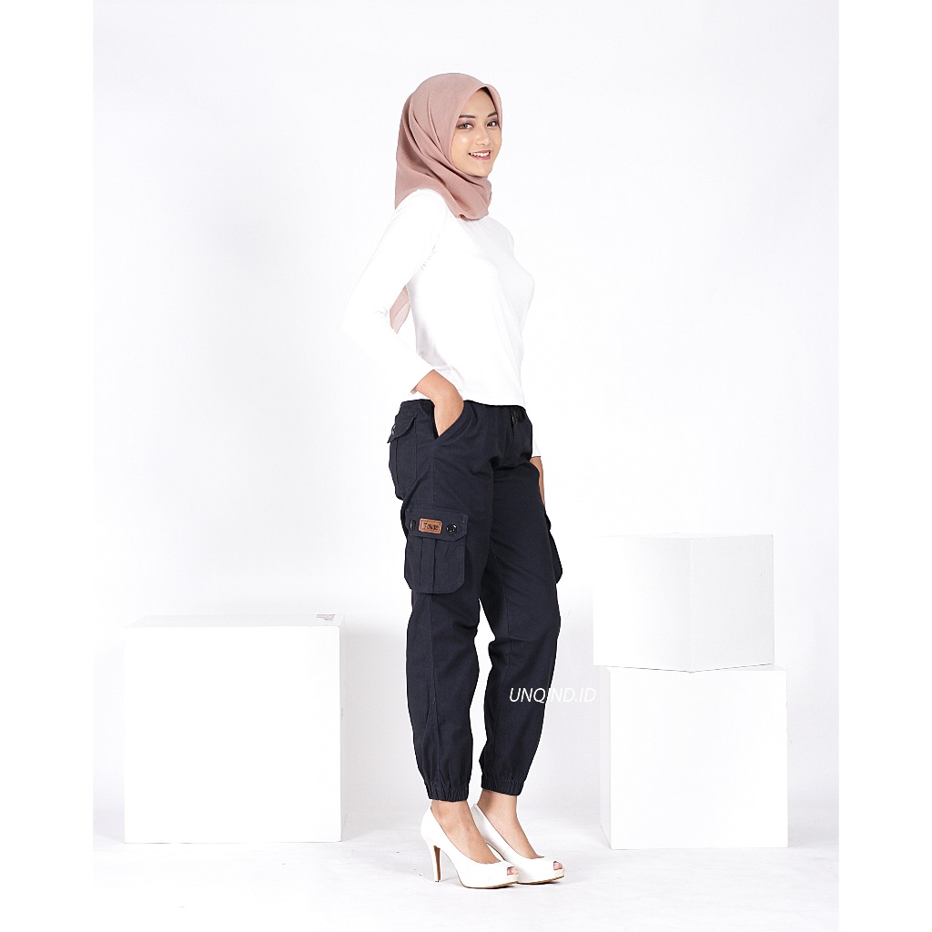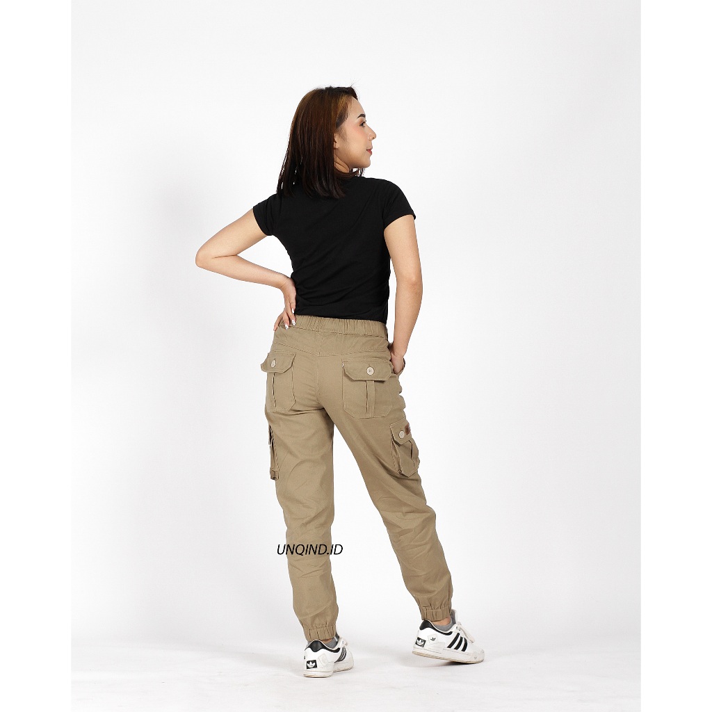 Joger Cargo Wanita JUMBO Bahan Katun Twill Premium Strecth - Celana Cargo Casual