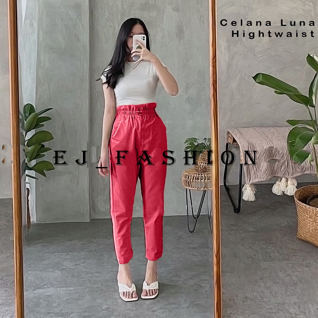 EJ Fashion Celana Wanita Kulot Luna Pensil Panjang Highwaist Kerut Susun Kancing 2 Terbaru 2024 Kekinian korean Style