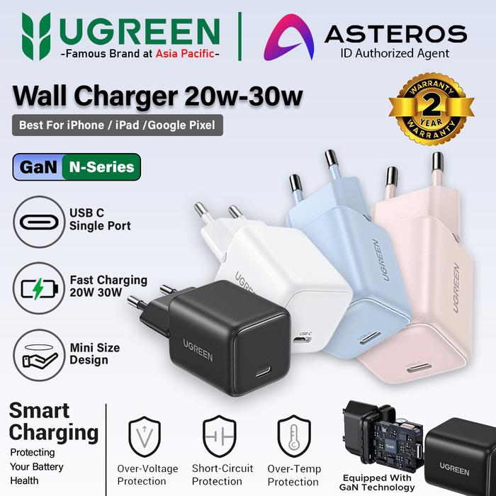 UGREEN Kepala Charger GAN For Iphone Xr 11 12 13 14 15 Fast Charging 20w white