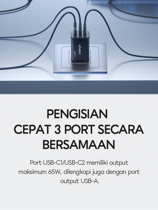 VIVAN GaN Charger GaN C65 65W 5A 3 Output PD QC4.0 Port Quick Charge