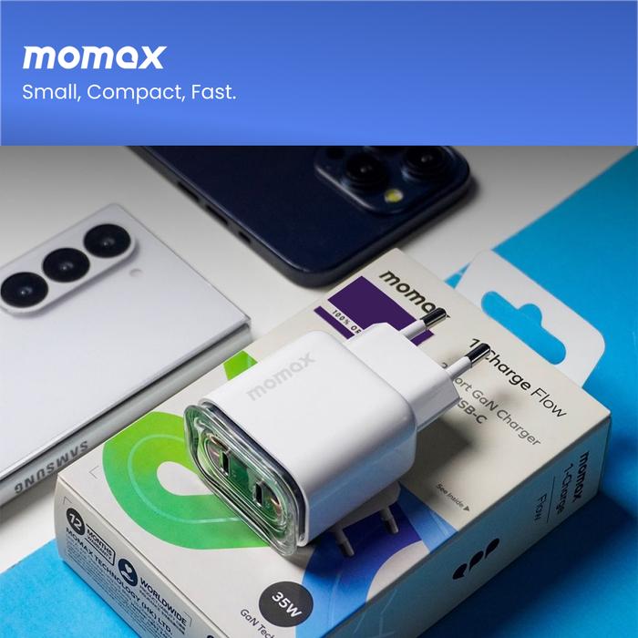 Momax Kepala Charger Adaptor USB Type C for iPhone Samsung 1-Charge Flow 35W PD GaN Dual Port