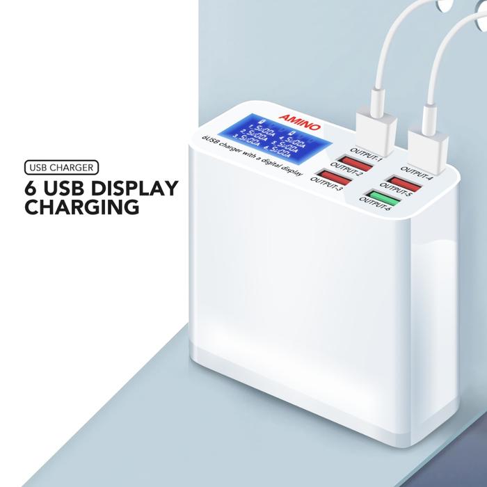 AMINO 40W 6 USB Port Multi Port Charger QC 3.0 Fast Charger LED Function Adaptor Power Kabel
