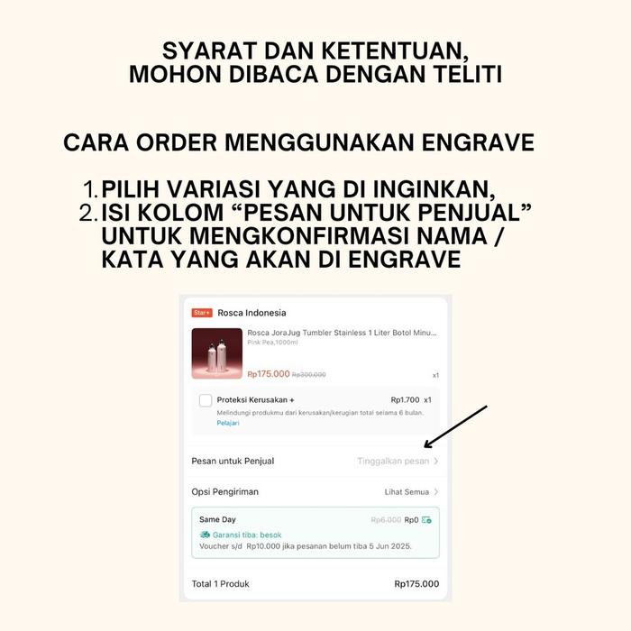 ENGRAVED Rosca JoraJug Tumbler Stainless 1 Liter Botol Minum 1 Liter Tahan Panas / Dingin Portable