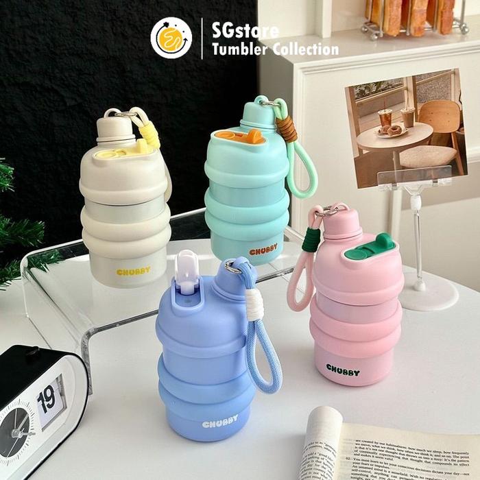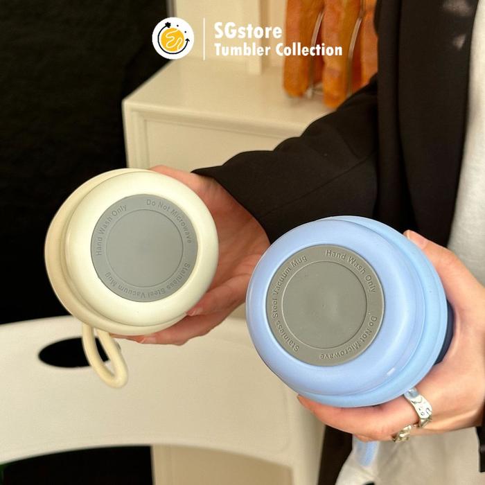 Botol Stainless Steel Vacum Mug Bahan Premium Lapis Plastik Modern Trendy Chubby 2 Cara Minum Mini