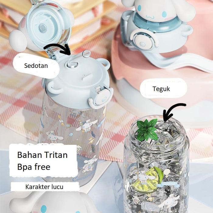 BOTOL MINUM SEDOTAN ANAK BAHAN TRITAN BPA FREE KARAKTER MELODY KUROMI CINNAMOROLL 650ML