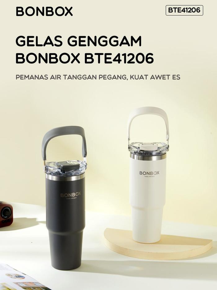 New ProductBONBOX BTE41206 Tumbler Stainless Steel Botol Minum Anti Tumpah 900ml Cream White Bottles