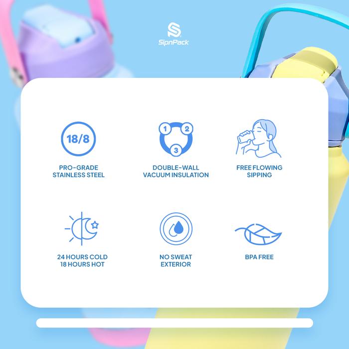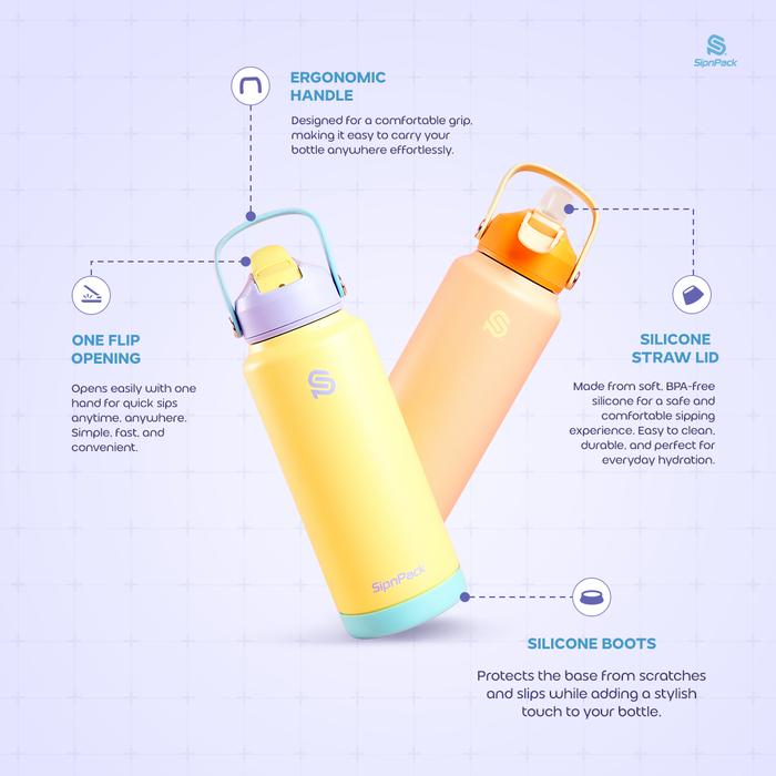 SipnPack EasySip Bottle 32oz 1000ml Insulated Bottle Silicone Straw Lid Botol Minum 1 Liter Tahan