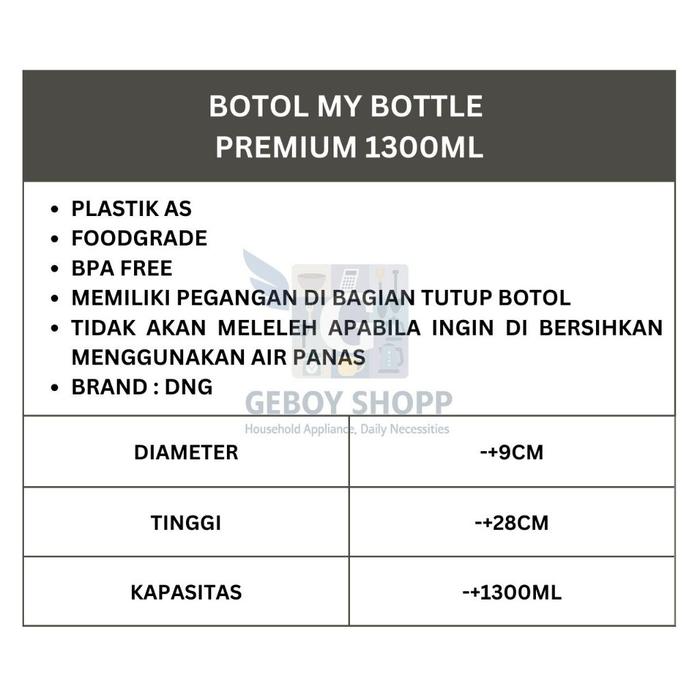 DNG My Bottle Premium 1300ml Botol Minum Kekinian, Tebal & Tahan Panas