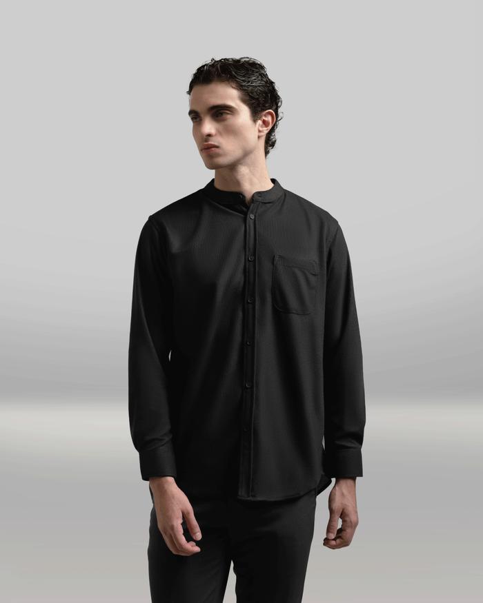 Broodis Kemeja Polos Hitam Kerah Shanghai SOFTEE/COLTEE Shanghai Black Lengan Panjang Kemeja Pria