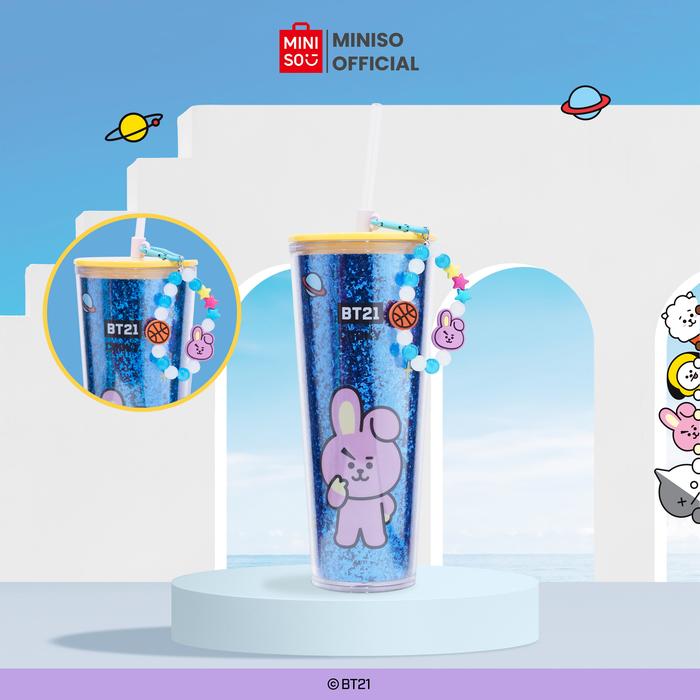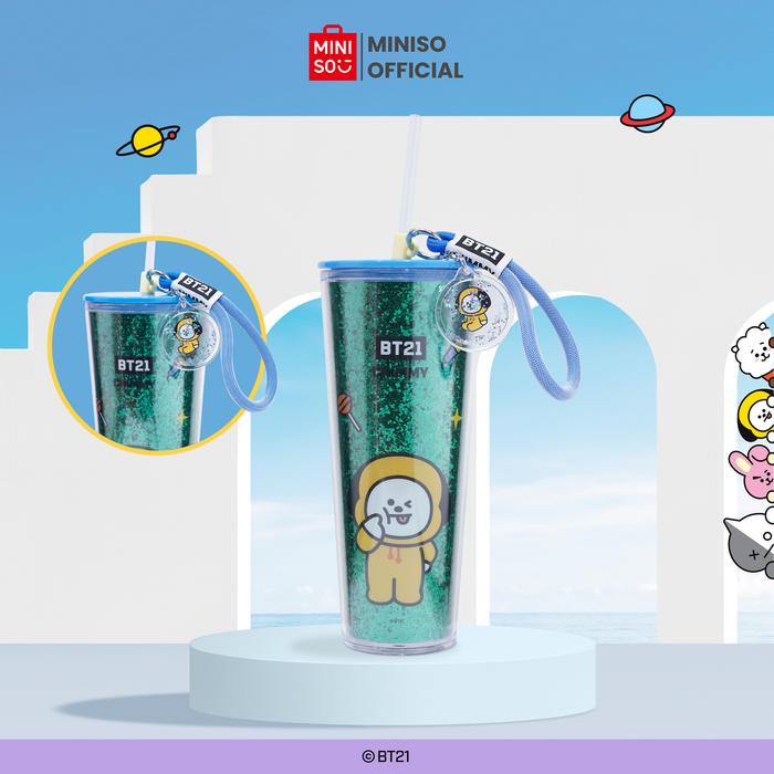 CLEARANCE Miniso x BT21 Collection Double Wall Plastic Tumbler with Straw & Decoration Botol Minum