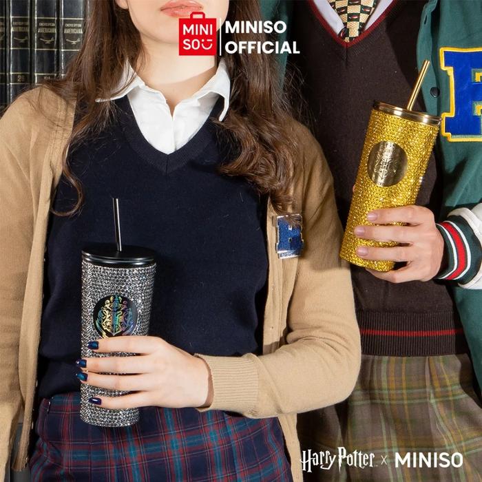Miniso X Harry Potter Botol Minum Tumbler Minum Diamond Straw Steel Cup 650mL Termos Stainless Steel
