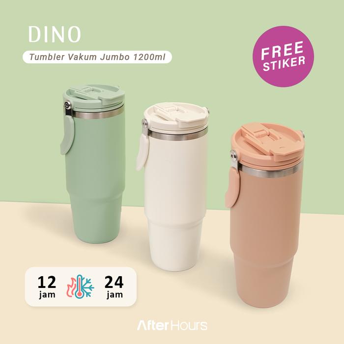 NEW DINO -Tumbler Vakum Jumbo 1200ml SS 304 dengan Handle Tahan Panas Dingin