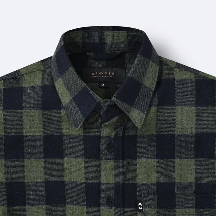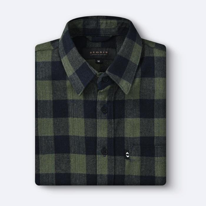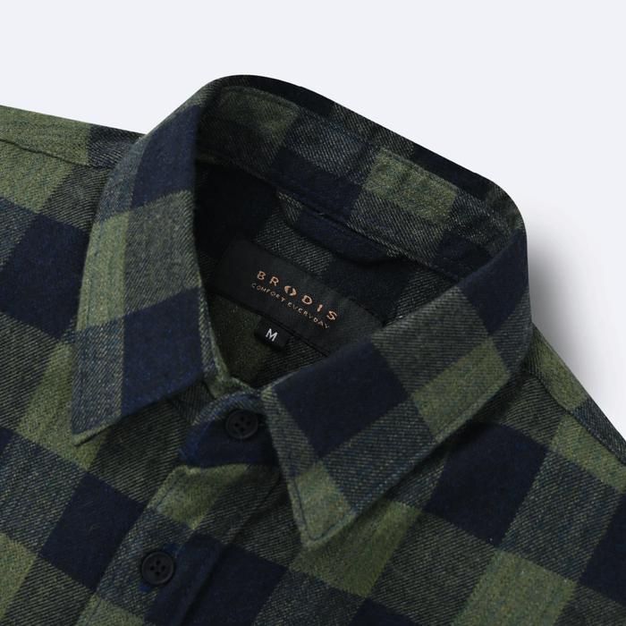 Broodis Kemeja Flannel Canbera Green Lengan Panjang Kemeja Pria Lengan Panjang Pendek Jumbo Polos