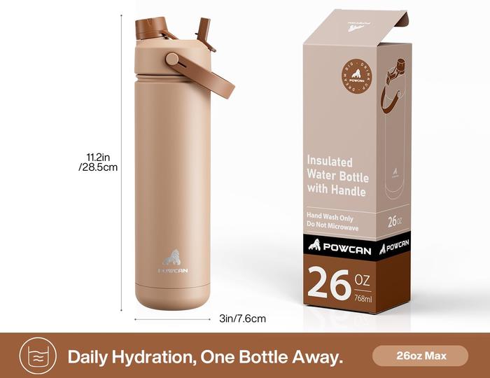 1PCS POWCAN Botol 760ml Insulated Stainless Steel Water Bottle with Straw, Plaid Pattern, Non-Slip,