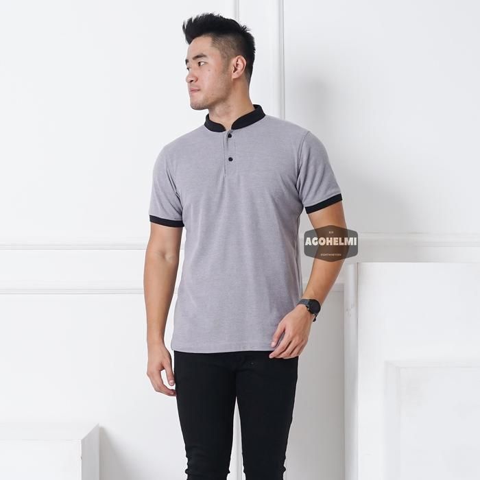 Polo Shirt Kaos Polo Pria Kerah Shanghai Polos Abu Muda JUMBO BIG SIZE - M