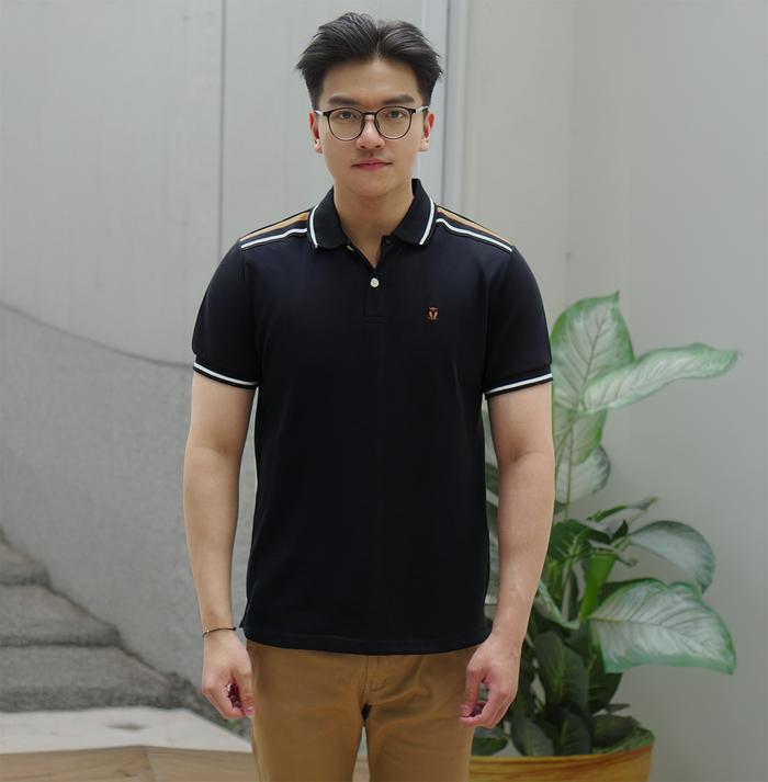 MATSUDA Unnan Black Baju Kaos Polo Shirt Dewasa Stripe Pria Kerah Katun - BLACK M (LD 104 CM)